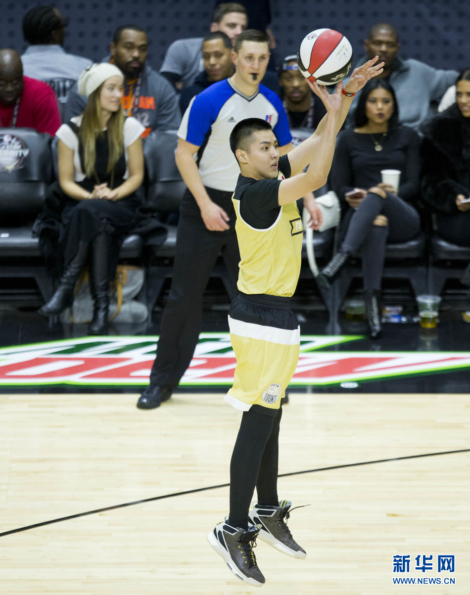 2月12日,吴亦凡在名人赛中投篮。新华网发(邹峥摄)