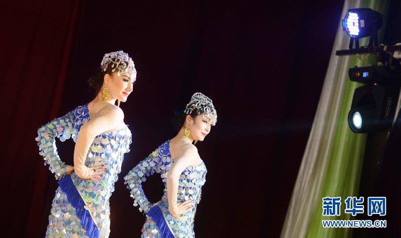 2月15日,乌兹别克斯坦撒马尔罕艺术学院大剧院,演员在“欢乐春节”文艺演出上表演舞蹈“年年有余”。新华网记者沙达提 摄