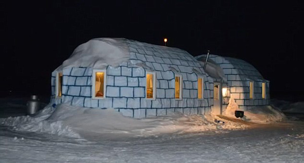 你见过用冰雪建造的酒吧吗?在冰雪世界里一尝美酒的芬芳,或者再来一条冒着热气的烤鱼真是一件令人倍感惬意的事。在加拿大边境以南10英里(约16千米)处,就有这样一家充满新奇色彩的酒吧——雪屋酒吧。