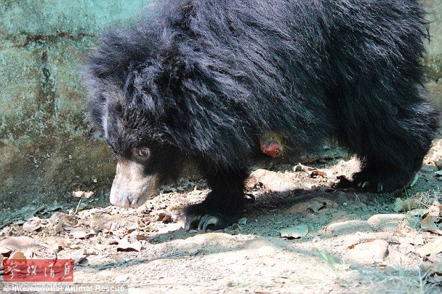 印尼幼熊因偷猎圈套失去脚掌 需靠鼻子行走(组图)