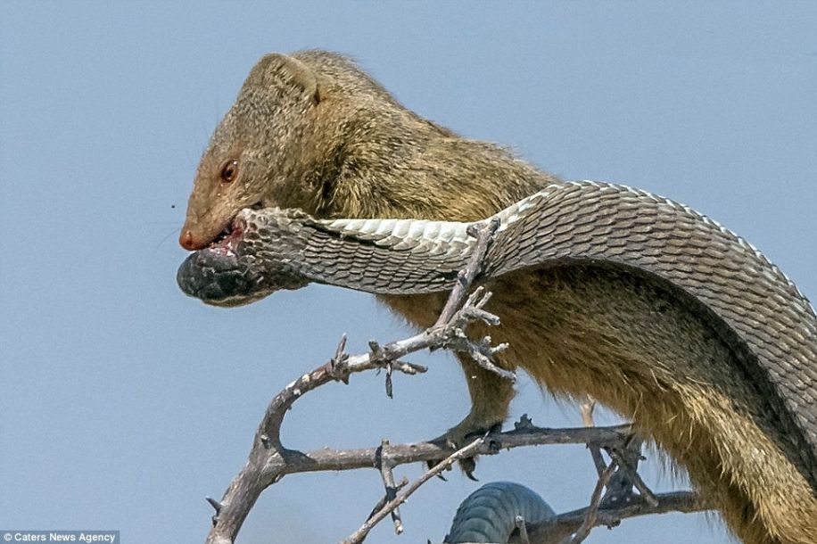 非洲树蛇树上觅食猫鼬 反成猫鼬盘中餐(组图)