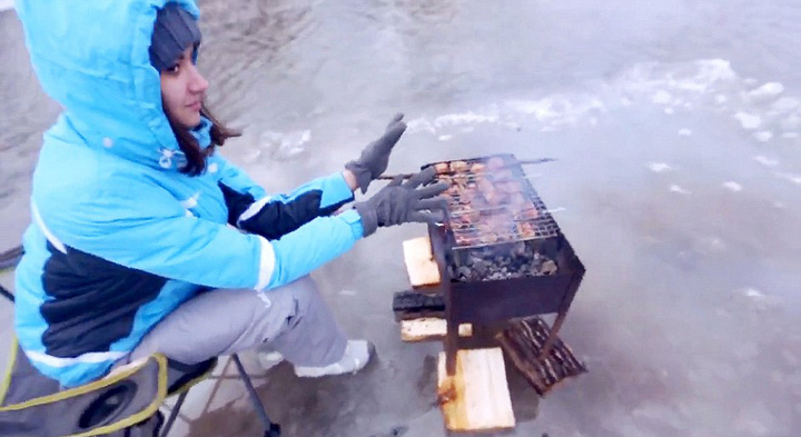 俄小伙河面浮冰当竹筏 野餐烧烤欢乐多(组图)