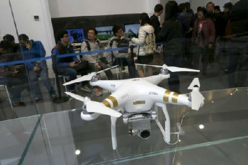 资料图:大疆创新科技有限公司在深圳开设的首家旗舰零售店,顾客在排队选购民用消费级无人机产品。