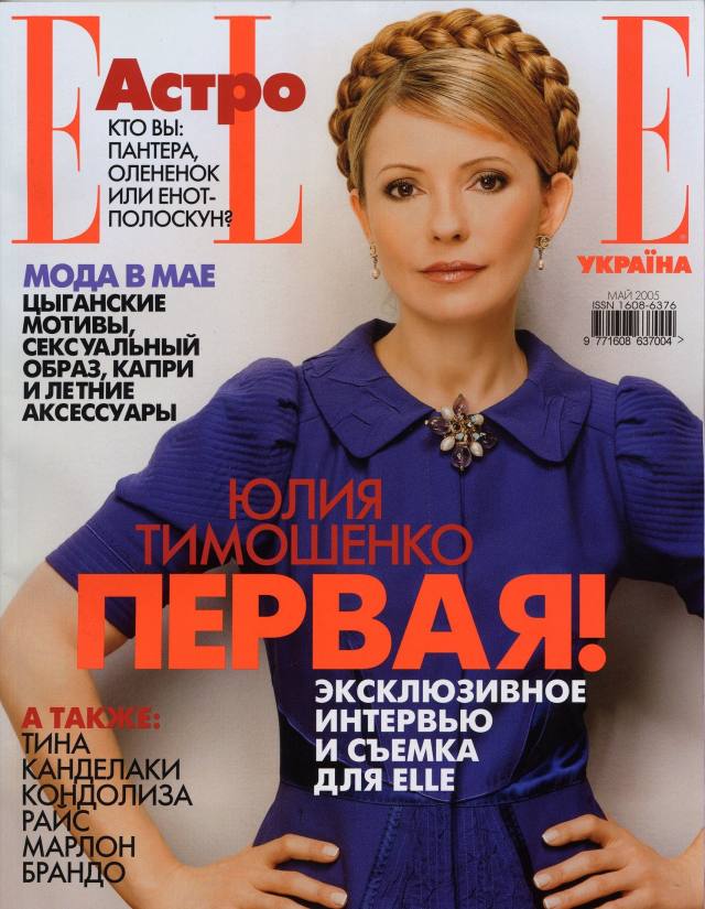 2005年4月,季莫申科接受杂志《ELLE》的邀请,拍摄了一组专题照片。金色的大辫子,紫色的套装裙,将外号“铁娘子”的她衬得柔美端庄。照片在当年5月出版的乌克兰语《ELLE》上刊登。