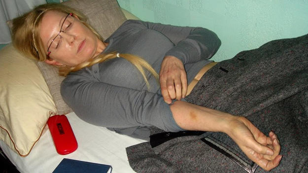 2011年10月,乌法院认定季莫申科在担任总理期间滥用职权干预乌俄谈判,导致乌方高价进口天然气,损失将近两亿美元,判处她7年监禁。2012年5月,在其服刑期间流出一段视频,她躺在床上展示了手上的瘀伤。虽然落魄,不过显然季莫申科还是经过一番精心捯饬,只是原先盘头的麻花辫垂在了胸前。