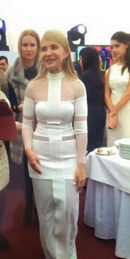 2015年11月,季莫申科在自己55岁生日宴上以披肩长直发亮相。只是这身半透视的紧身长裙让人有点大跌眼镜……