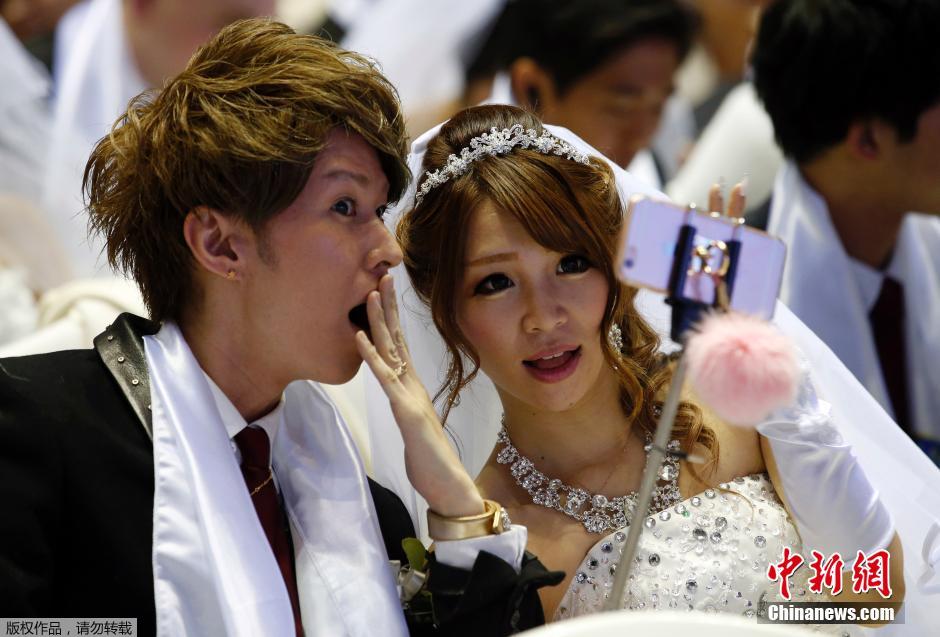 当地时间2016年2月20日,韩国加平郡,约3000对来自60多个国家的新人参加韩国统一教举行的大型集体婚礼。