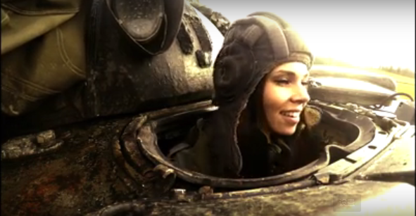 据报道,Viivi Pumpanen是芬兰著名电视主持人和演员。她驾驶着T-55AM坦克,技术娴熟,压毁了两辆汽车。