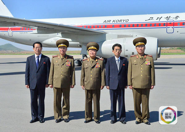 图为2013年5月22日,朝鲜最高领导人金正恩特使崔龙海当天启程访华前与数名朝鲜高官在平壤机场合影,左二为李永吉。(新华/朝中)