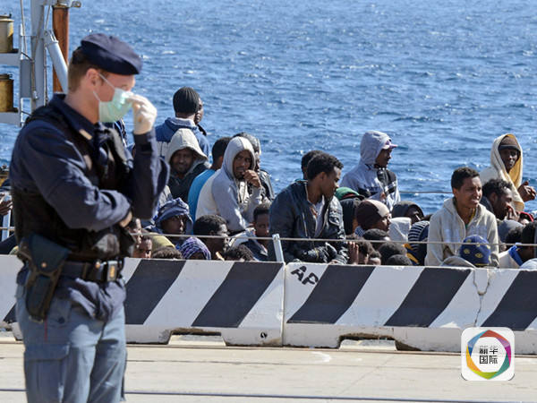 在意大利西西里岛,意大利海岸警卫队拯救的非法移民乘船抵达墨西拿港。 (新华/法新)