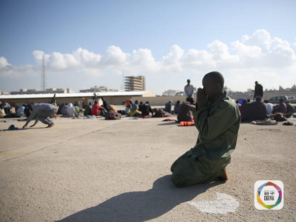 2015年12月21日,在利比亚的黎波里一座海军基地,一名被救难民正在起祈祷。一艘偷渡难民船当天在地中海发生事故沉没,其中2人遇难,10人下落不明。(新华/欧新)