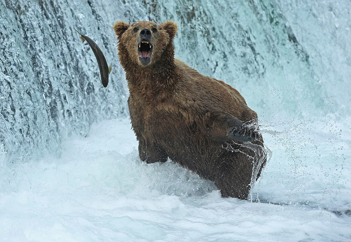 据英国《每日邮报》2月21日报道,近日,在美国阿拉斯加的布鲁克斯瀑布,多只灰熊打起了水仗,并且饱食了一顿三文鱼大餐。