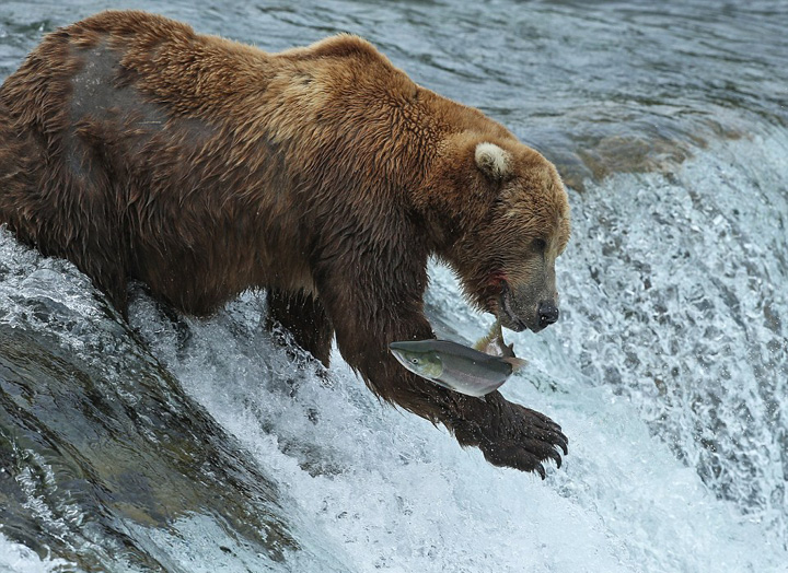 据英国《每日邮报》2月21日报道,近日,在美国阿拉斯加的布鲁克斯瀑布,多只灰熊打起了水仗,并且饱食了一顿三文鱼大餐。