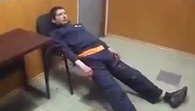 俄罗斯男子警局内嗑药自嗨手舞足蹈(组图)