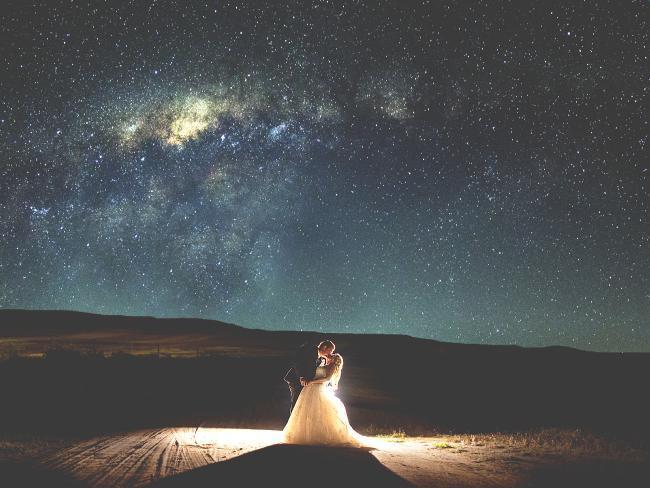 星空主题也是唯美值极高的婚礼背景,在遥远的星系的映衬下,一切都蒙上了梦幻的影子。艾米和罗兰德这对27岁新人在星光下相拥而吻,千言万语汇成一句话——你是天空中最亮的星。当然,首先要有能看见这么多星星的能见度。