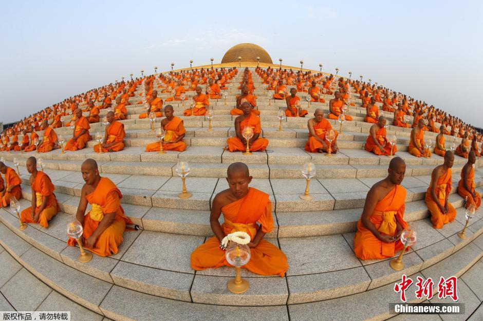 泰国庆祝万佛节 僧人打坐场面蔚为壮观(图)