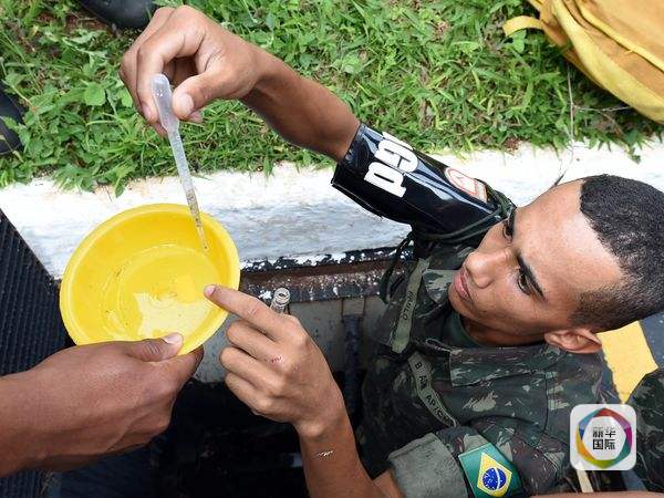 巴西首都巴西利亚,一名军人抽取下水道水样。(图片来源:新华/法新)
