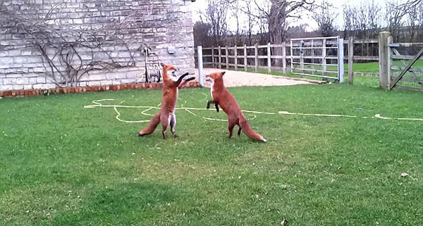 50岁的西蒙是一名退休装配工,住在英国萨默塞特郡汤顿镇附近的小村庄里。两年前,两只狐狸时不时到西蒙的房子“做客”,并逐渐与他熟络起来。之后,西蒙开始喂养这对狐狸。只要他出声呼唤或者吹个口哨,两只小家伙就会屁颠屁颠地跑向他。