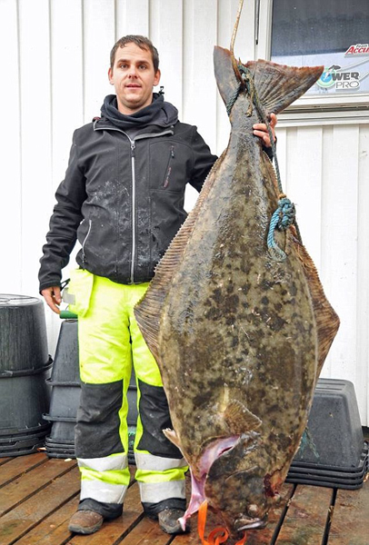 挪威渔夫捕到百斤重比目鱼破世界纪录