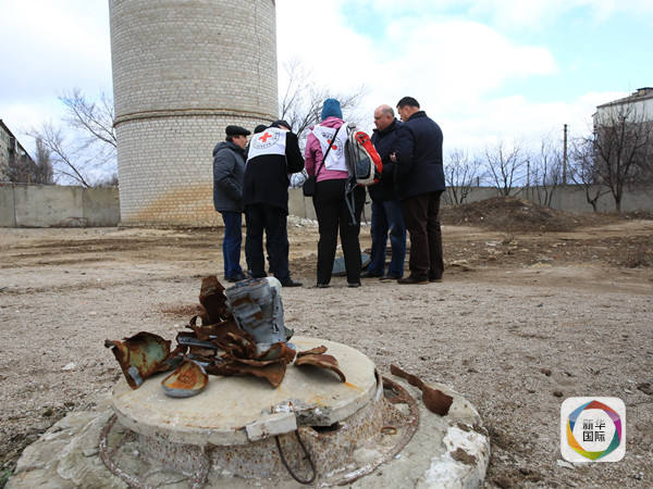 红十字国际委员会工作人员同当地政府官员和爆破专家一起,在现场商讨爆破方案。(新华社发)