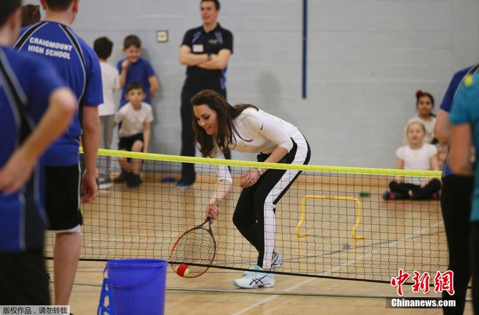 凯特王妃造访爱丁堡高中 穿运动装打网球似少女(组图)