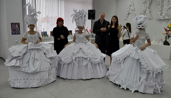 俄设计师用白纸制作哈萨克斯坦传统婚纱(组图)