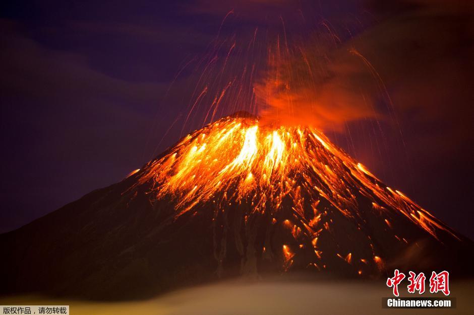 厄瓜多尔通古拉瓦火山喷发 夜空绚丽(高清组图)