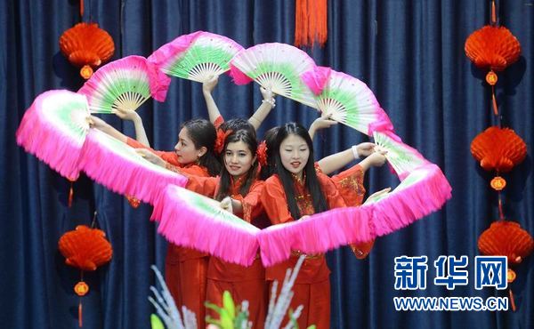 2月26日,乌世界经济与外交大学礼堂,学生表演节目。