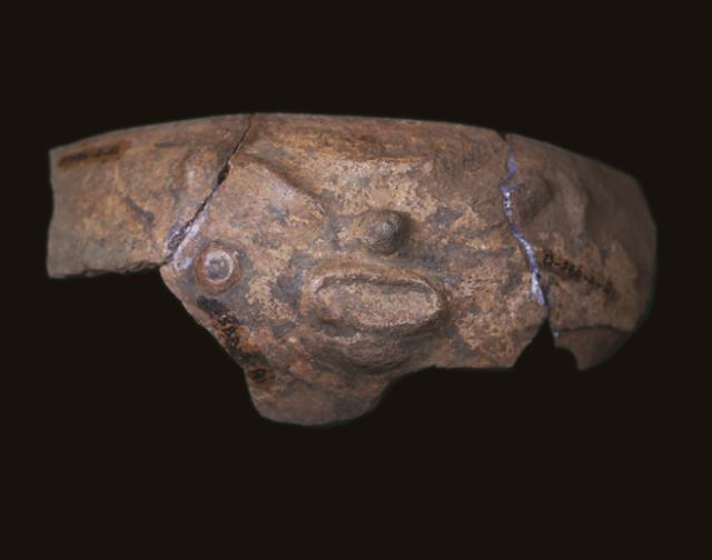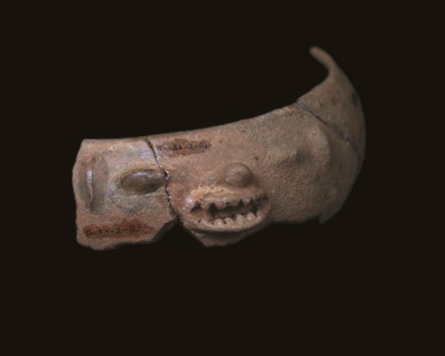 有笑脸装饰的卢纳彩陶片,可能代表的是中美洲的大地神魔。