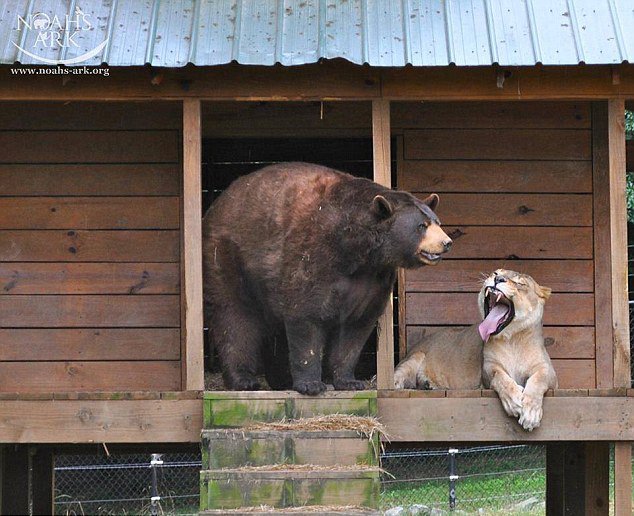 美国动物收容所 狮子老虎熊相伴15载结下友情(图)