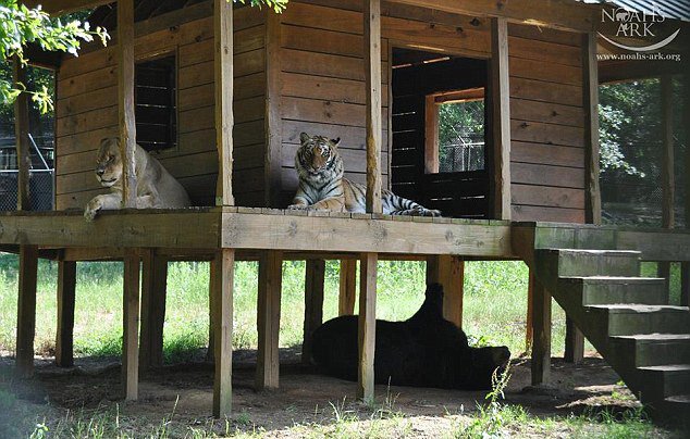 美国动物收容所 狮子老虎熊相伴15载结下友情(图)