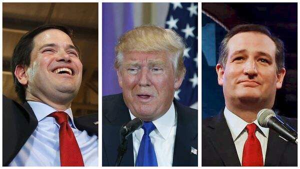 共和党总统竞选人(从左往右):鲁比奥、特朗普、克鲁兹。