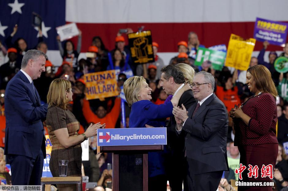 希拉里“超级星期二”初选获胜 纽约举行竞选集会