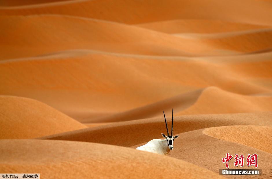 当地时间2016年3月1日,阿联酋Umm Al-Zamool,羚羊在阿拉伯羚羊保护区。阿拉伯羚羊保护区位于阿曼的中东沙漠及高山地区,占地约8900平方公里,目前生活着约155只阿拉伯大羚羊。