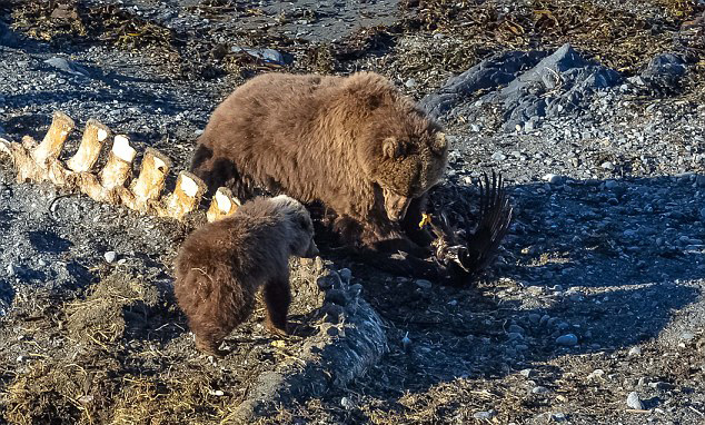 秃鹰与棕熊抢食被拍倒在地 奄奄一息(图)