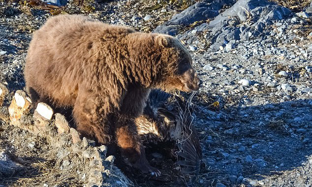 秃鹰与棕熊抢食被拍倒在地 奄奄一息(图)