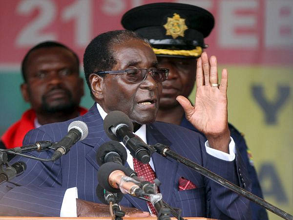 2月27日,津巴布韦总统穆加贝对支持者发表讲话。