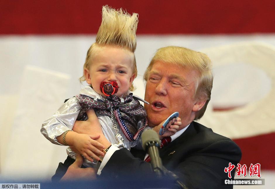 美共和党总统参选人特朗普竞选集会 扫把头萌娃抢镜(图)