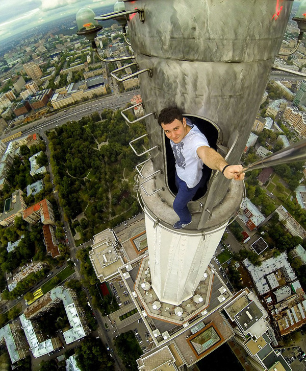 俄青年高楼顶部冒险自拍 画面刺激令人心惊(组图)