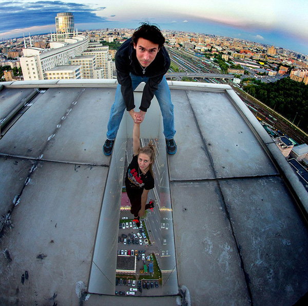 俄青年高楼顶部冒险自拍 画面刺激令人心惊(组图)