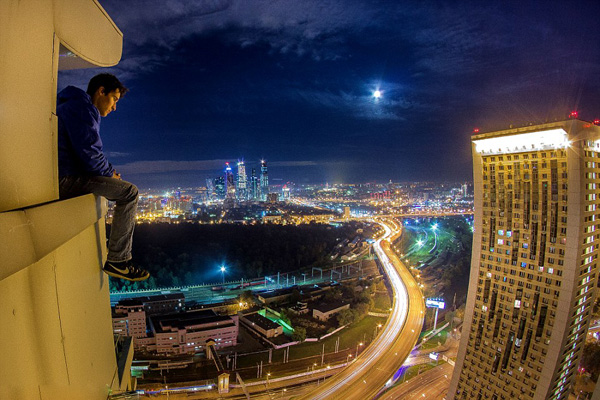 俄青年高楼顶部冒险自拍 画面刺激令人心惊(组图)