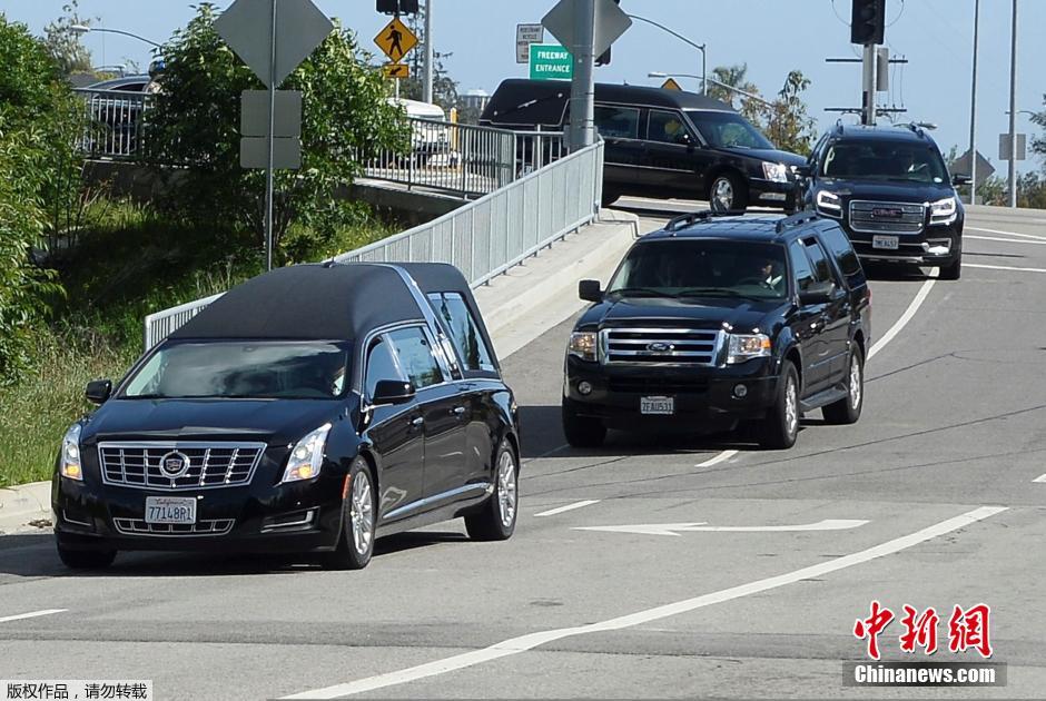 当地时间3月6日,运载南希·里根灵柩的车辆前往加州西米谷里根总统图书馆,南希·里根将被安葬在丈夫的墓地旁。