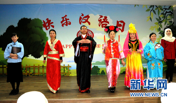 汉语老师在表演中国服装秀。新华网记者蒋少清摄