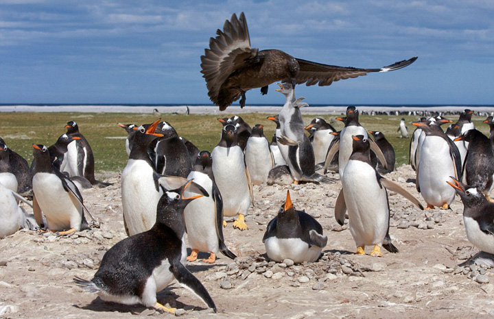 摄影师拍海鸟俯冲捕食小企鹅的震撼一幕(组图)