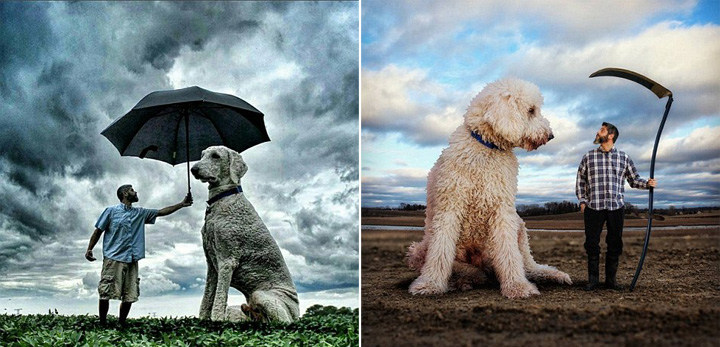 据英国《每日邮报》3月6日报道,美国弗吉尼亚州摄影师克里斯多夫 克莱因(Christopher Cline)用修图软件制作了一组他和爱犬——金毛犬和巨型贵妇犬的混血Juji一起在世界各地畅玩,进行各种挑战的图片,展现了他和爱犬的亲密无间的特殊情意。