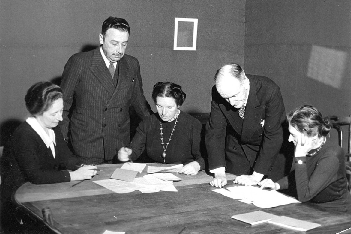 1939-1945年战争。日内瓦中央战俘局委员会。坐在中间的是勒内-玛格丽特·弗里克-克拉梅尔(Renée-Marguerite Frick-Cramer),她是一战期间红十字国际委员会的首批女代表之一。