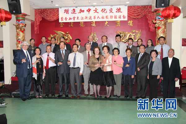 2013年马君强和加拿大江浙沪各侨团侨领及加拿大政府官员合影。