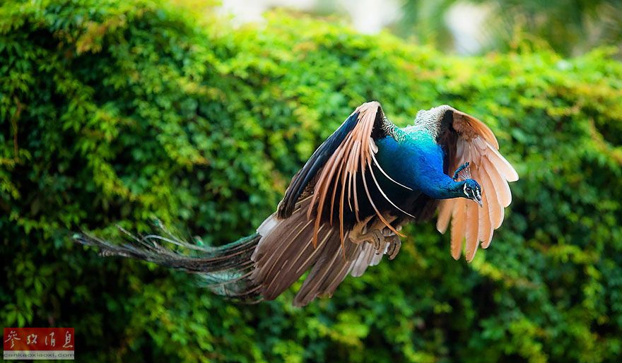 难得一见!孔雀空中飞翔绝美画面(图)