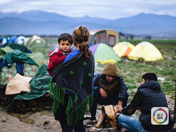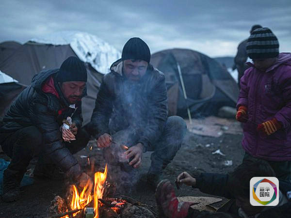 难民滞留在希腊与马其顿边界处。(图片来源:新华/法新)
