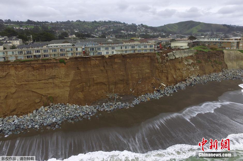 当地时间3月8日,美国加福尼亚州的太平洋沿岸持续遭遇大浪侵蚀,当地海滨公寓岌岌可危。目前,该区域居民已全部疏散,防止危险出现。